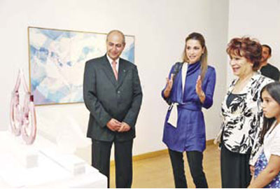 وفي جولة لجلالتها ترافقها رئيسة الجمعية الملكية للفنون الجميلة سمو الأميرة وجدان الهاشمي، ومدير عام المتحف د. خالد خريس، اطلعت جلالتها على اعمال الفنانين مستمعة لشرح منهم عن اعمالهم الفنية المتنوعة.