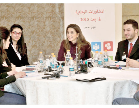 وجاءت مشاركة جلالتها امس بصفتها احد اعضاء اللجنة رفيعة المستوى التي اختارها الامين العام للامم المتحدة بان كي مون لرسم اجندة التنمية العالمية لما بعد عام2015.